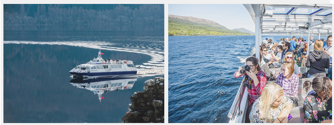 Trôi nhẹ trên mặt hồ xanh thẳm, ngắm nhìn khung cảnh núi non hùng vĩ và lắng nghe các câu chuyện về quái vật Nessie từ hệ thống thuyết minh trên thuyền.