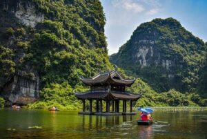 13:30 – 15:45: Di chuyển ra bến đò, lên thuyền tham quan khu du lịch sinh thái Tràng An.